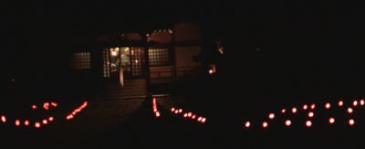 本堂前には竹灯籠を灯し、一年の無事を感謝して御宝前にて法華経を読誦し、お題目を唱えて、仏祖三宝に御礼の法要を行います。